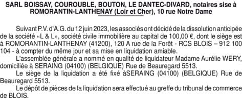 SARL S. BOISSAY, A. COUROUBLE et L. BOUTON Et A-C. LE DANTEC-DIVARD (ROMORANTIN) - Loir et Cher (41)