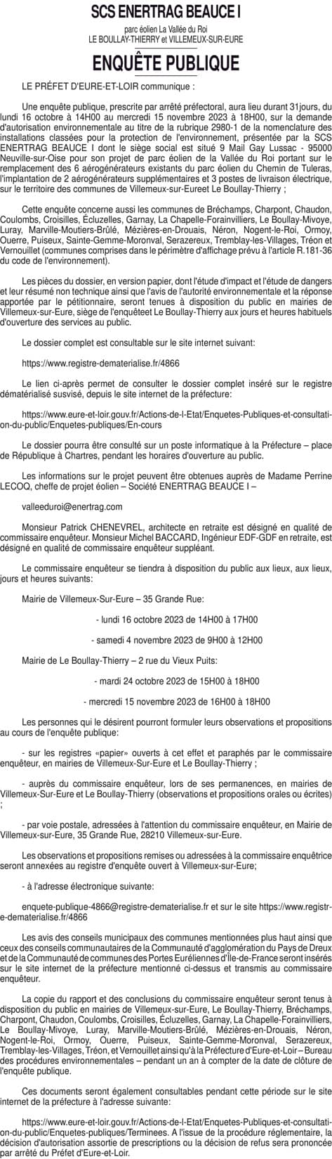 ENERTRAG BEAUCE I SCS - Eure et Loir (28)
