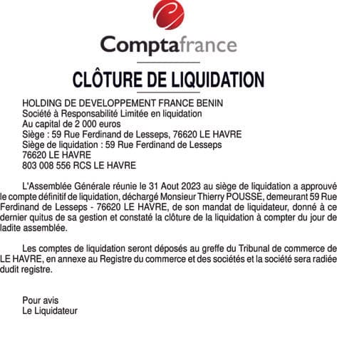 HOLD DEV FRANCE BENIN LIQUIDATION