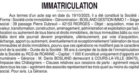 BOSLAND GESTION IMMO 1 - Loire (42)