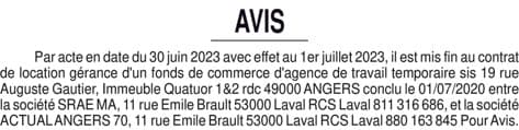 La présentation de votre annonce peut varier selon la composition graphique du journal