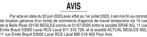 La présentation de votre annonce peut varier selon la composition graphique du journal