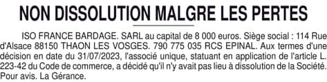ISO FRANCE BARDAGE - Non dissolution