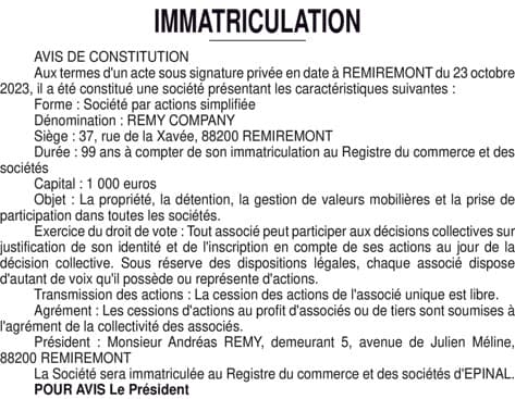 La présentation de votre annonce peut varier selon la composition graphique du journal