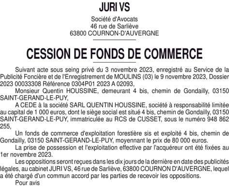 La présentation de votre annonce peut varier selon la composition graphique du journal