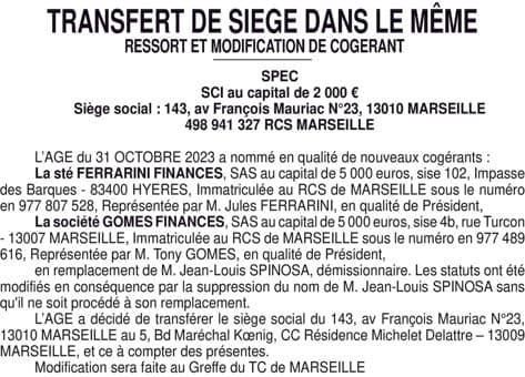 SPEC - SIEGE ET COGERANTS