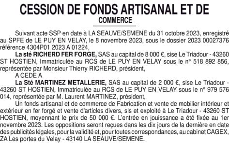 La présentation de votre annonce peut varier selon la composition graphique du journal