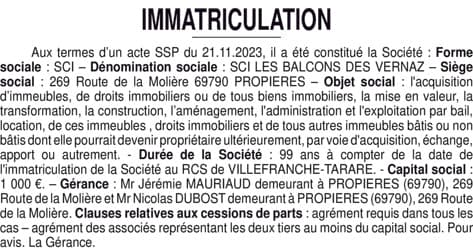SCI LES BALCONS DES VERNAZ - Rhône (69)