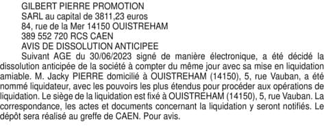 GILBERT PIERRE PROMOTION - DISSOLUTION