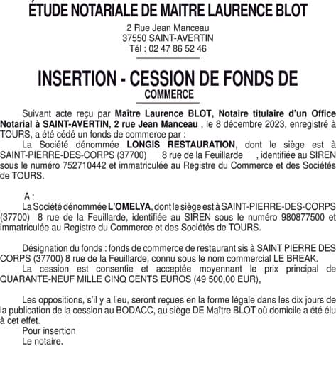La présentation de votre annonce peut varier selon la composition graphique du journal