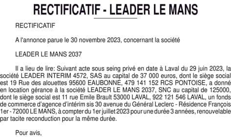 La présentation de votre annonce peut varier selon la composition graphique du journal