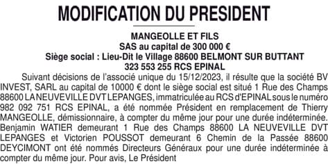 La présentation de votre annonce peut varier selon la composition graphique du journal