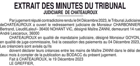 TRIBUNAL JUDICIAIRE DE CHATEAUROUX - Indre (36)