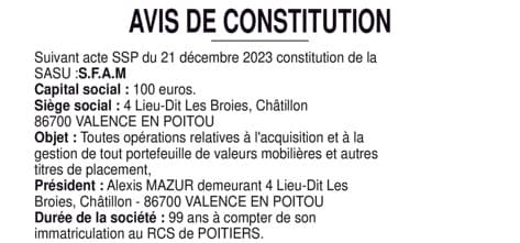 La présentation de votre annonce peut varier selon la composition graphique du journal