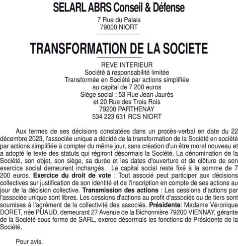 SELARL ABRS Conseil et Défense NIORT - Deux-sèvres (79)