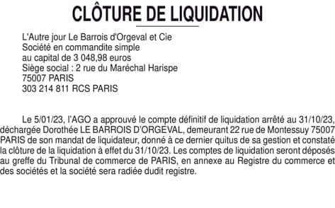 LE BARROIS D ORGEVAL & CIE - Paris (75)