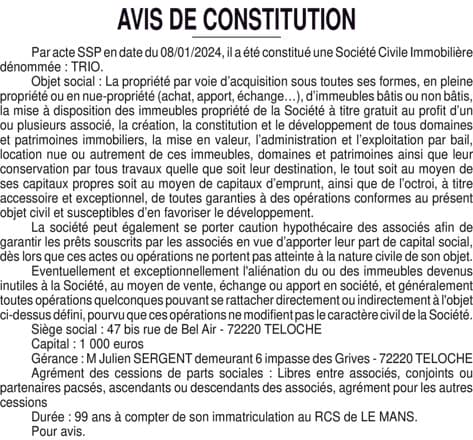 La présentation de votre annonce peut varier selon la composition graphique du journal