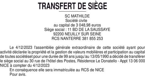dans le journal LES PETITES AFFICHES DES ALPES MARITIMES