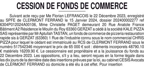 La présentation de votre annonce peut varier selon la composition graphique du journal