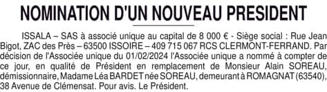 La présentation de votre annonce peut varier selon la composition graphique du journal