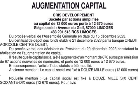 CRIS DEV augmentation capital