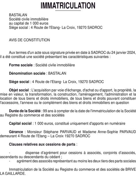BASTALAN IMMATRICULATION
