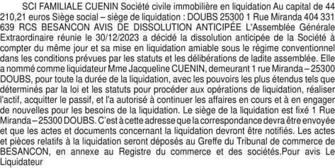 SCI FAMILIALE CUENIN