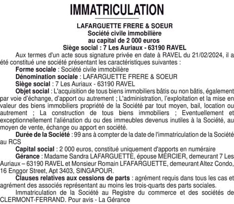 LAFARGUETTE FRERE & SOEUR - Puy-de-dôme (63)