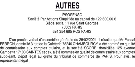La présentation de votre annonce peut varier selon la composition graphique du journal