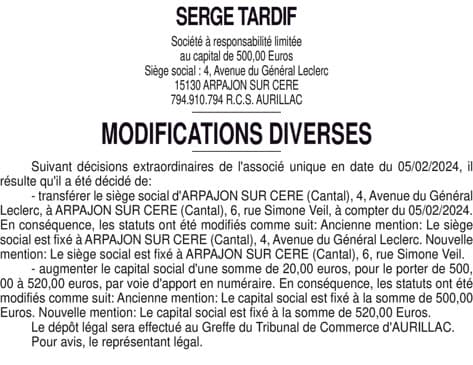 La présentation de votre annonce peut varier selon la composition graphique du journal