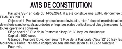 La présentation de votre annonce peut varier selon la composition graphique du journal