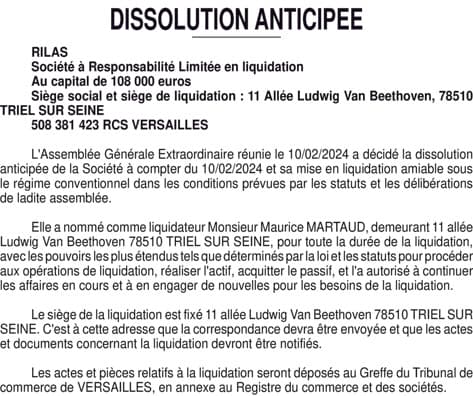 La présentation de votre annonce peut varier selon la composition graphique du journal