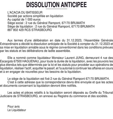 ACACIA DU BATISSEUR - Dissolution