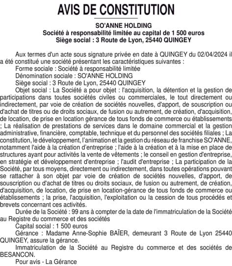 La présentation de votre annonce peut varier selon la composition graphique du journal