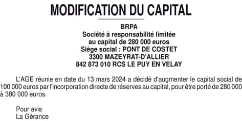 AUGMENTATION K BRPA