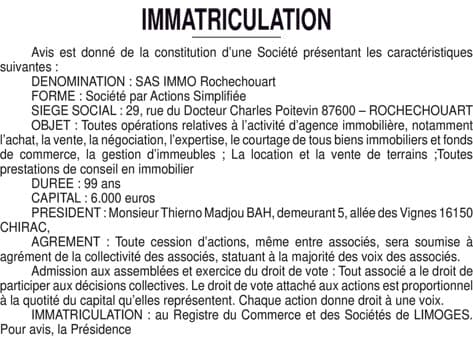 Immatriculation SAS IMMO Rochechouart