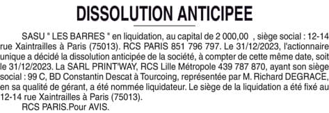 La présentation de votre annonce peut varier selon la composition graphique du journal