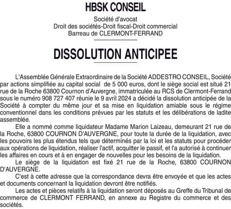 La présentation de votre annonce peut varier selon la composition graphique du journal