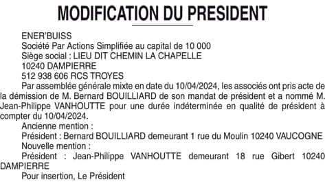 La présentation de votre annonce peut varier selon la composition graphique du journal