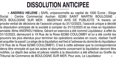 La présentation de votre annonce peut varier selon la composition graphique du journal