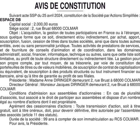 La présentation de votre annonce peut varier selon la composition graphique du journal