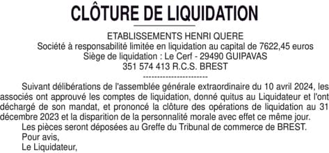 ETABLISSEMENTS HENRI QUERE - Finistère (29)