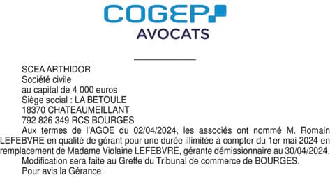 dans le journal L'INFORMATION AGRICOLE DU CHER