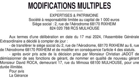 EXPERTISES & PATRIMOINE siège-gérant