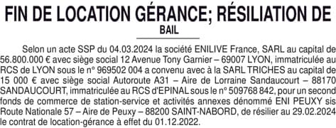 SARL TRICHES N°61307 - Fin géran