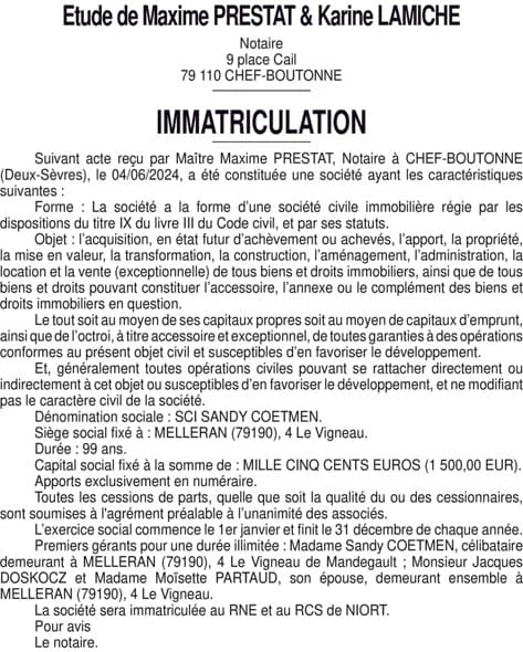24 444 SCI SANDY COETMEN Statuts