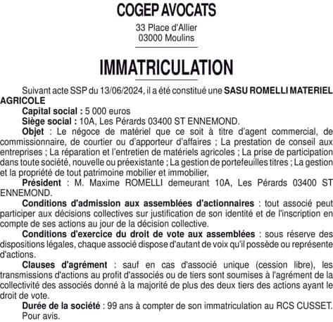 ROMELLI MATERIEL AGRICOLE - Allier (03)