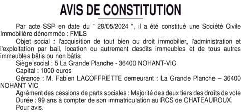 La présentation de votre annonce peut varier selon la composition graphique du journal