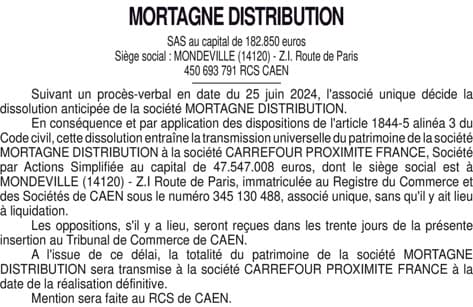 2245103 MORTAGNE DISSOLUTION