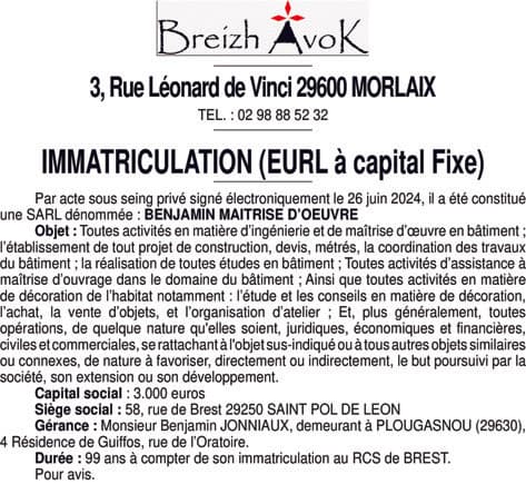 BENJAMIN MAITRISE D'OEUVRE - Finistère (29)